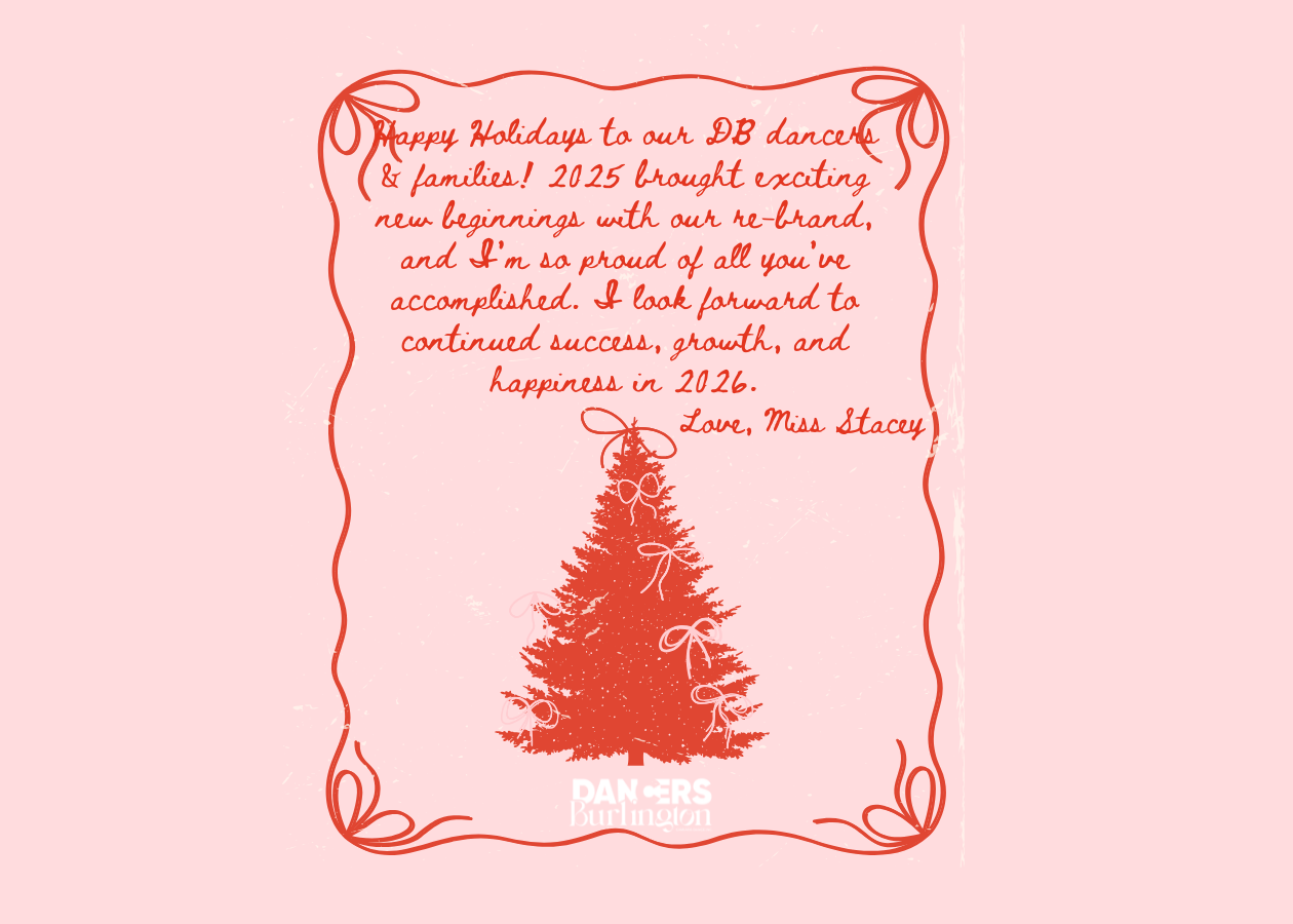 Wishing all our DB dancers a very happy holiday season! 2025 was a year of refresh, growth, and exciting new beginnings as we embraced our re-brand and stepped into a new chapter together. I am so proud of the hard work, passion, and heart each of you brings into the studio every day.